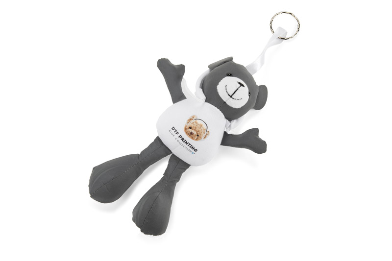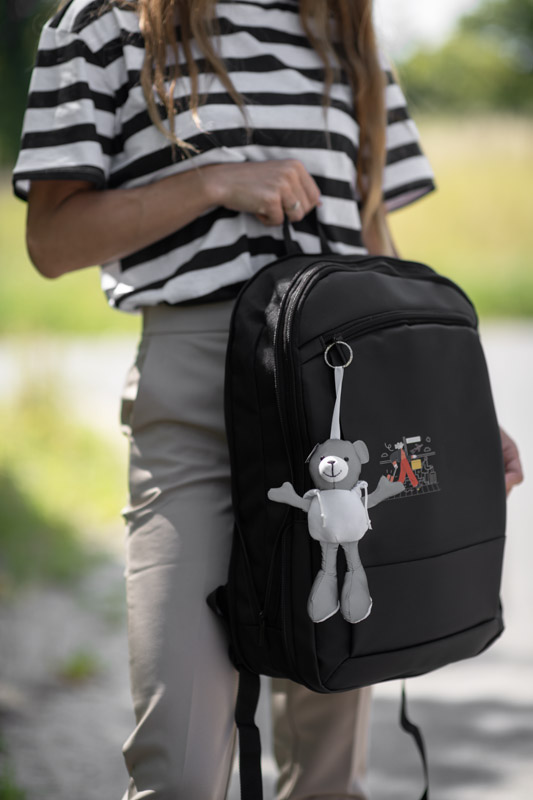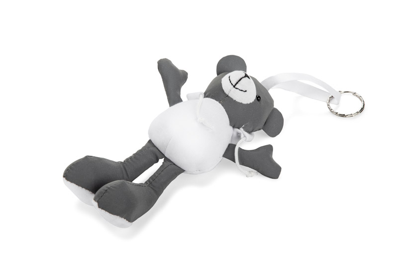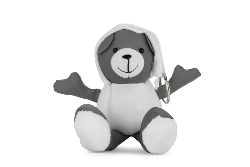 TED to przyjemny brelok reklamowy w kształcie misia w sweterku. Głowa, ręce i nogi zostały wykonane z materiału o połyskującej powierzchni, która odbija światło i przyciąga wzrok. Do misia przyszyta jest biała taśma z poliestru, zakończona metalowym kółkiem umożliwiającym przypięcie do plecaka, torby lub kluczy. Sympatyczny i funkcjonalny dodatek – idealny na sezonowe akcje promocyjne.