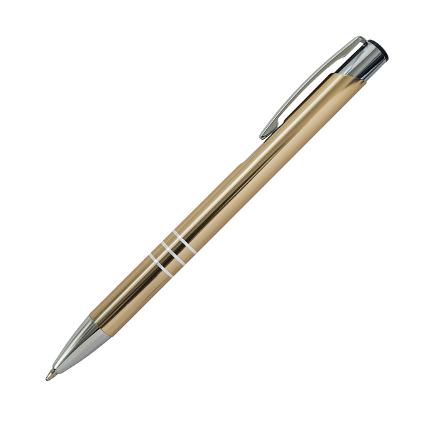 Długopis aluminiowy. Wyposażony w niebieski wkład.