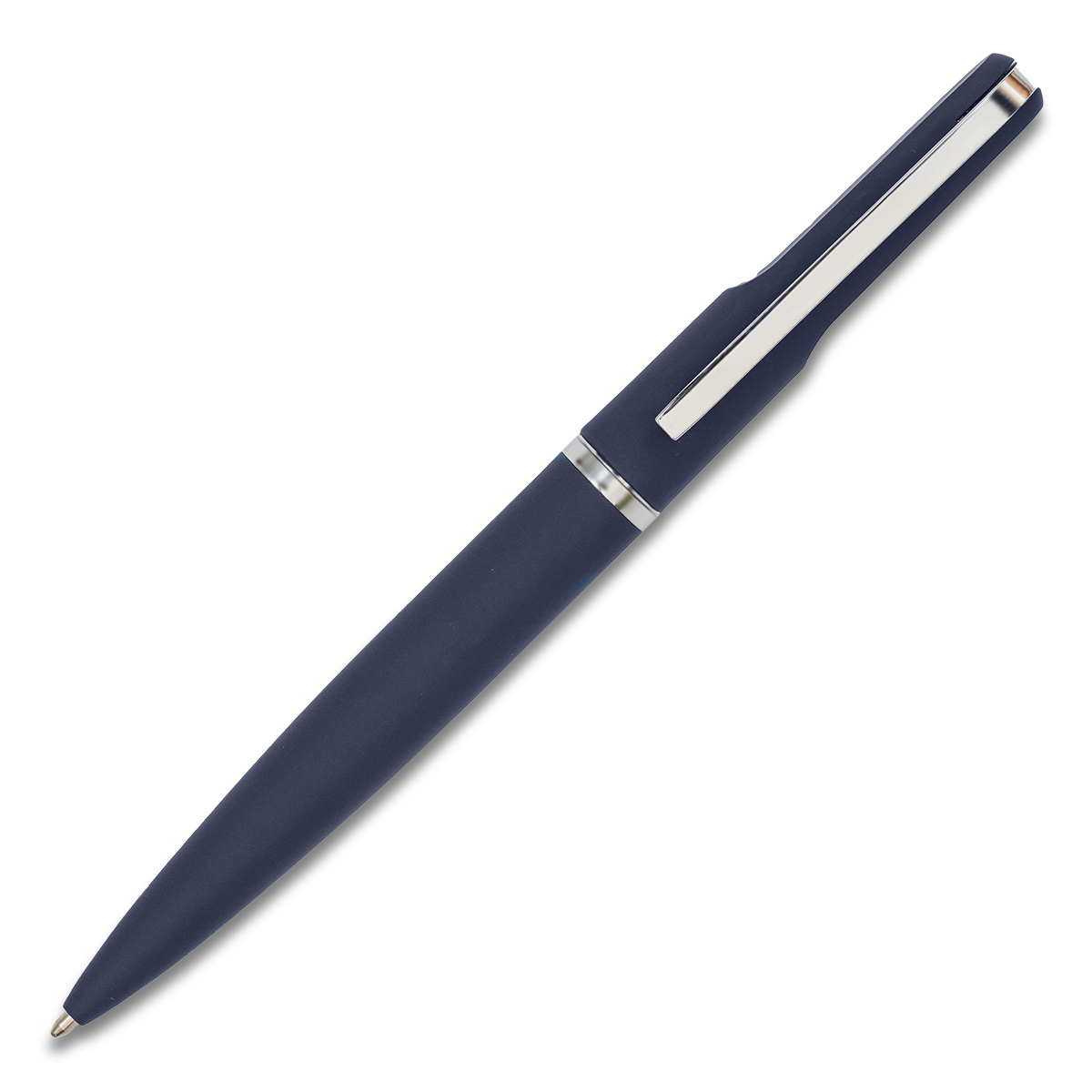Elegancki długopis o przyjemnym w dotyku, satynowym wykończeniu. Pakowany w upominkowe pudełko. Wkład w kolorze niebieskim.